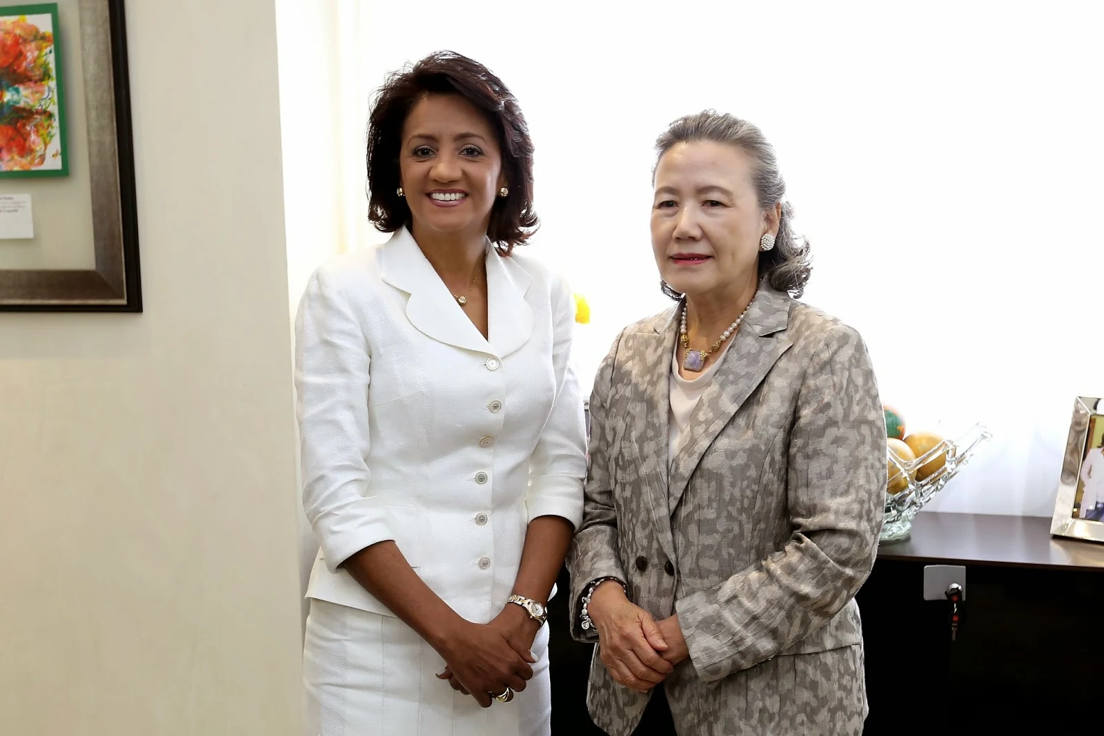 Aoki, donde fue recibida por la Primera Dama Montilla de Medina, la